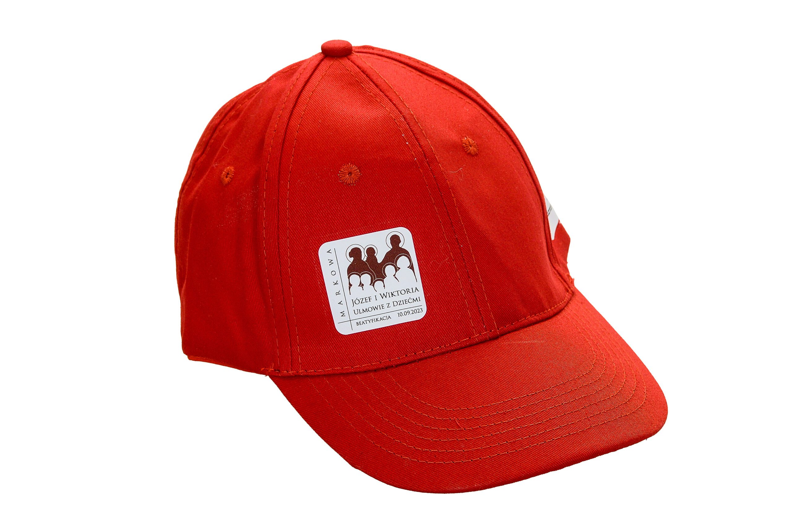 Czapka z daszkiem upamiętniająca Beatyfikację rodziny Ulmów.